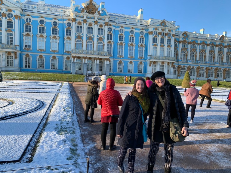 Yesterday, we spent the majority of the day with a guide exploring both St. Petersburg via walking and Pushkin via car. There is snow on the ground, the air brisk and the sky blue… the city could not have greeted us better. Let’s hope it continues!