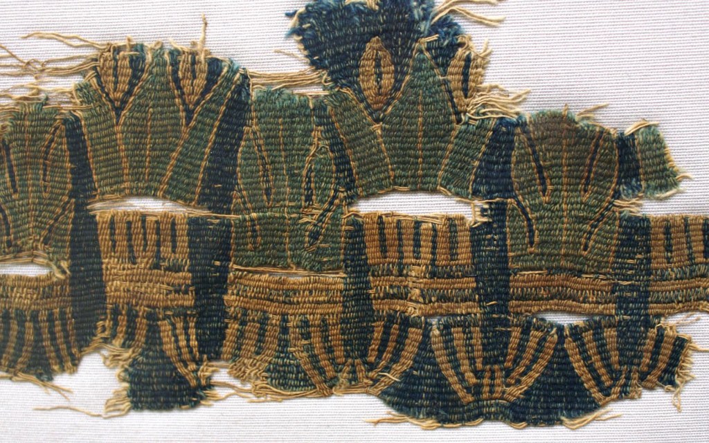 In Africa, it is believed that cotton was first cultivated by the Nubians (near Eastern Sudan today) around 5000 BCE. However, archeological evidence from the Meroe Archeological site only supports around 500-300 BCE. Below is a stunning textile, currently housed in the British Museum, from this site. If you are curious to learn more about it and the other textiles from this dig, Dr. Elsa Yvanez has a wonderful site devoted to the topic.