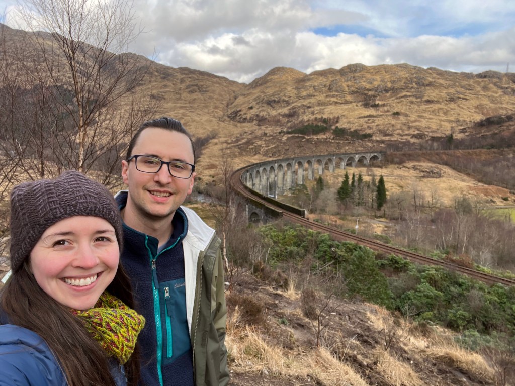 3/16 – Today was our only full day in the western highlands of Scotland and we managed to pack a lot in! I did a little sketching in the morning as the birds were singing – it was magical. We drove to Oban for a full breakfast at Roxy’s cafe. I bought some Harris Tweed scraps and postcards at the fabric and wool centre while there. We drove up to the lookout at McCaig’s Tower (from which the first two photos were taken). Oban itself is a very cute town and I’m happy we passed through. We then headed north to make our way towards Fort William, stopping at a small shore to stretch our legs along the way. When we made it to Fort William we walked around a bit and went in to the West Highlands Museum. From there, we drove to the Glenfinnan Viaduct, famously known for its role in the Harry Potter series as the picturesque backdrop for the journey to Hogwarts. There is a lot more to explore there than I realized with numerous little trails and areas to explore – it was well worth the 2 hour car ride 🙂 When we got back I was able to visit with Liz and explore her textile studio and shop. We had a lovely chat about wool, natural dyes and all the projects she had done, including making a storytelling yurt back in the ‘90s! She also had several natural dye and felt books I’d never seen before. More on this later 🙂